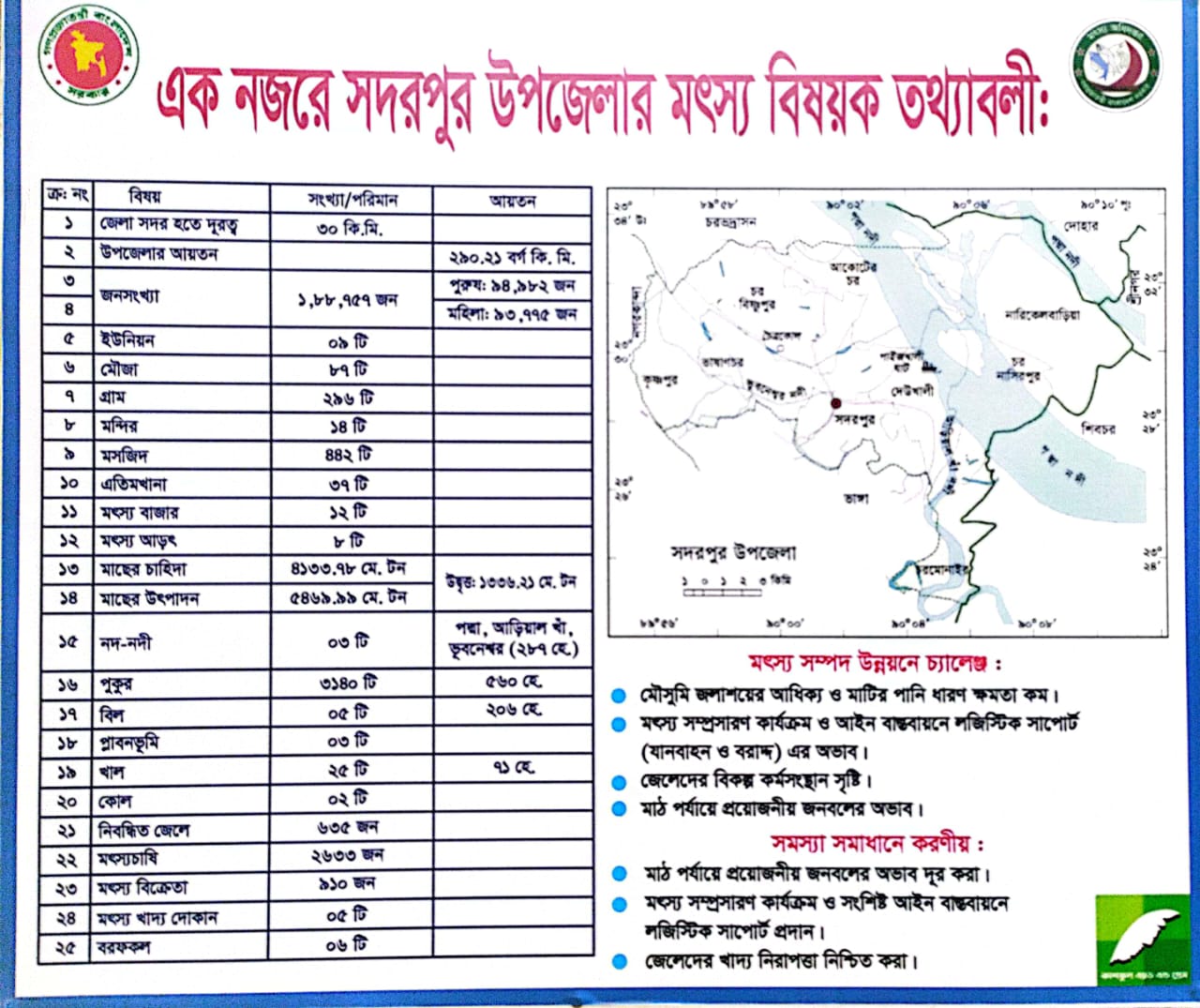 ফরিদপুর জেলার সদরপুর উপজেলার প্রাণকেন্দ্রে সদরপুর-ভাঙ্গা উপজেলা সড়কের পাশে উপজেলা পরিষদ ভবনের নিচ তলায় উপজেলা মৎস্য দপ্তর, সদরপুর অবস্থিত।